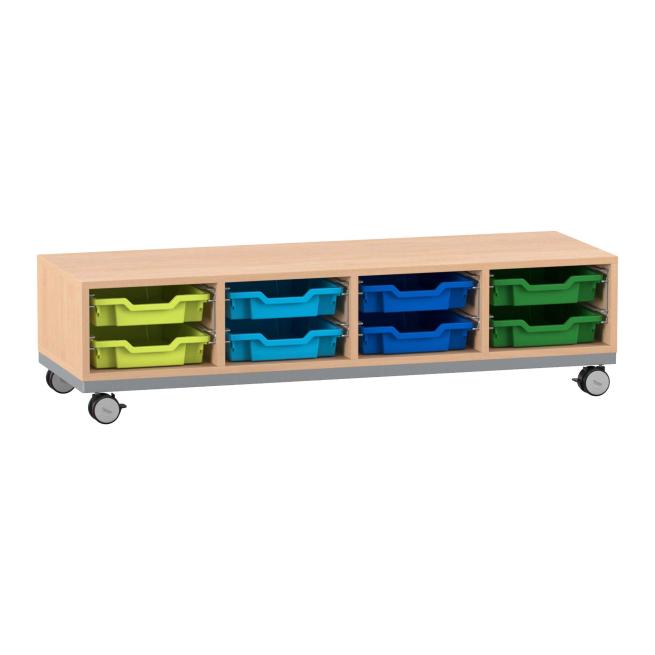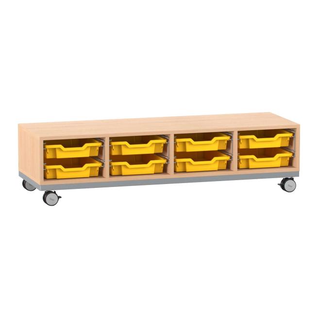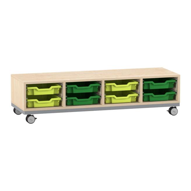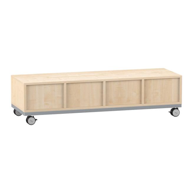 Funktionelle Ordnung. Das Regal mit Stahlrahmen-Verstärkung und den hohen Boxen ist praktischer Aufräumhelfer und Sitzgelegenheit zugleich. Dank Sichtrückwand nutzen Sie das Regal auch als Raumteiler. Mithilfe der 4 Rollen verschieben Sie es einfach dorthin, wo Sie es brauchen. Dabei bieten die 2 feststellbaren Rollen festen Halt. Besonders stabil ist das Regal auch durch die 8 mm starke Rückwand.