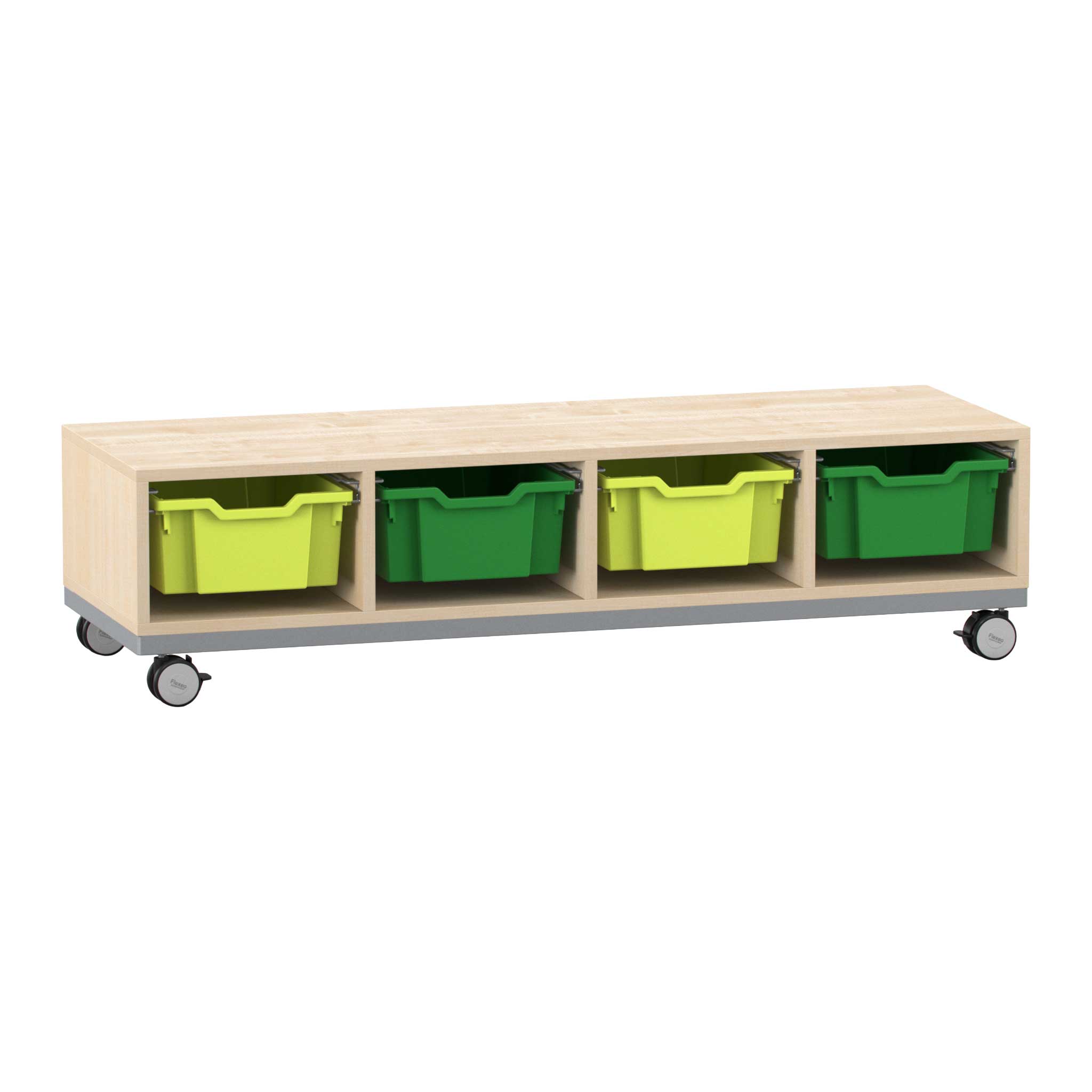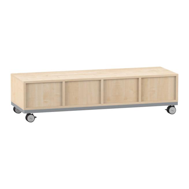 Funktionelle Ordnung. Das Regal mit Stahlrahmen-Verstärkung und den hohen Boxen ist praktischer Aufräumhelfer und Sitzgelegenheit zugleich. Dank Sichtrückwand nutzen Sie das Regal auch als Raumteiler. Mithilfe der 4 Rollen verschieben Sie es einfach dorthin, wo Sie es brauchen. Dabei bieten die 2 feststellbaren Rollen festen Halt. Besonders stabil ist das Regal auch durch die 8 mm starke Rückwand.