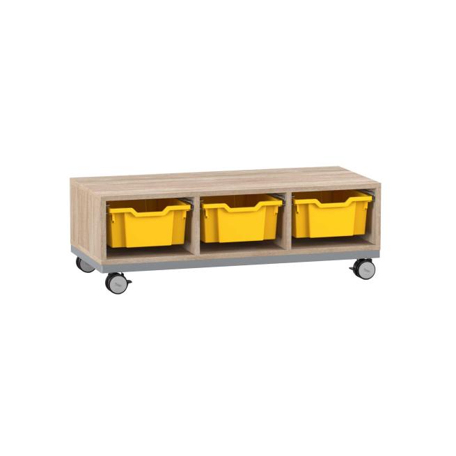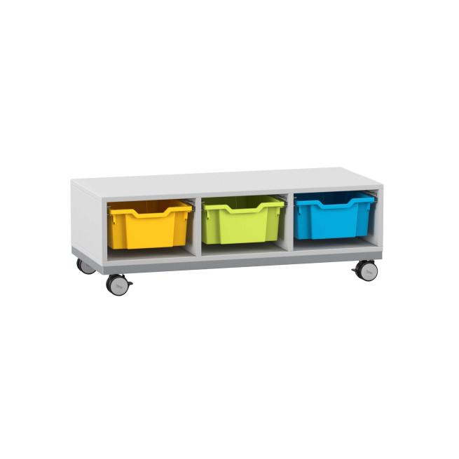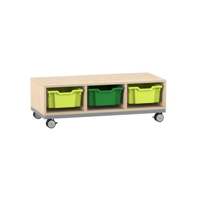 Funktionelle Ordnung. Das Regal mit Stahlrahmen-Verstärkung und den hohen Boxen ist praktischer Aufräumhelfer und Sitzgelegenheit zugleich. Dank Sichtrückwand nutzen Sie das Regal auch als Raumteiler. Mithilfe der 4 Rollen verschieben Sie es einfach dorthin, wo Sie es brauchen. Dabei bieten die 2 feststellbaren Rollen festen Halt. Besonders stabil ist das Regal auch durch die 8 mm starke Rückwand.