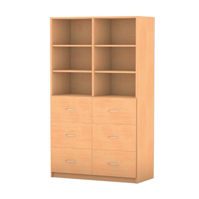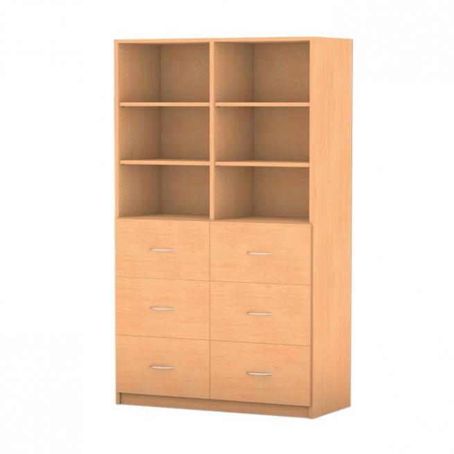 Regal mit Mittelwand, 6 hohe Holzschubladen mit Griffen, mit 4 verstellbaren Böden