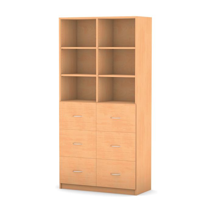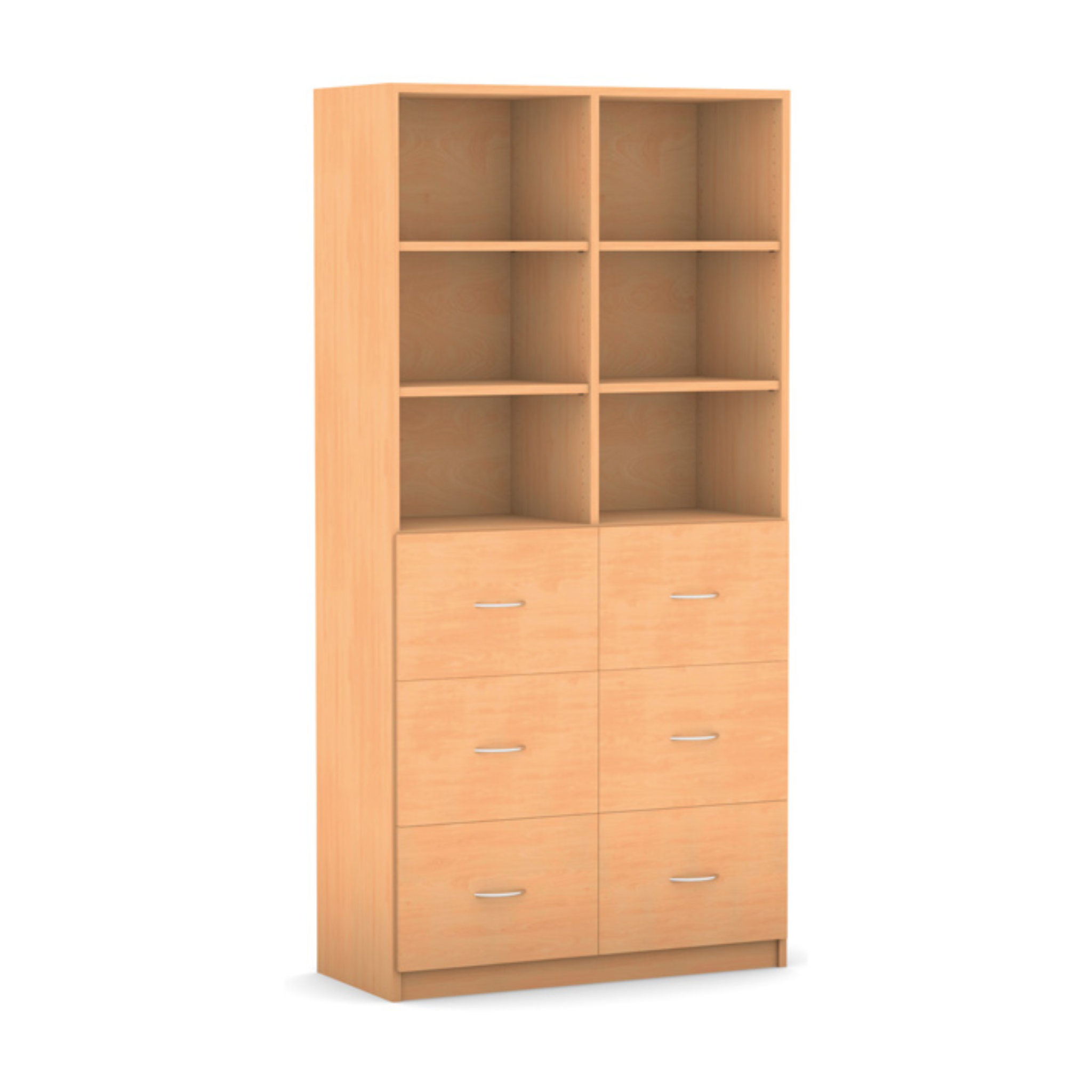 Regal mit Mittelwand, 6 hohe Holzschubladen mit Griffen, mit 4 verstellbaren Böden