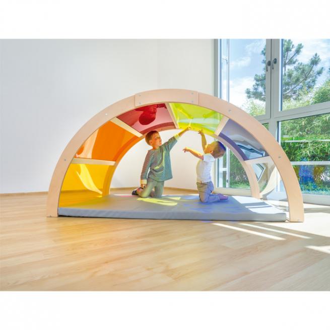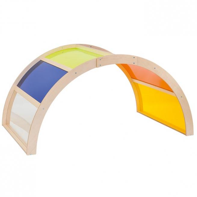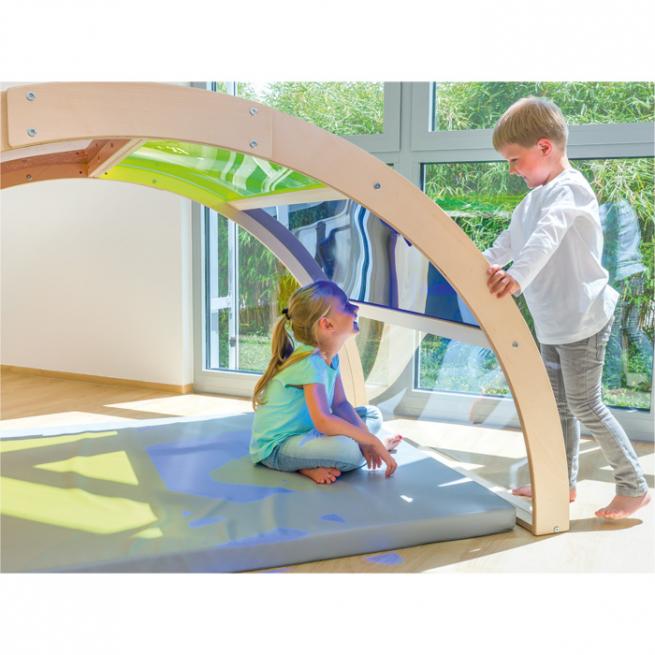 Unter dem Bogen mit verschiedenfarbigen Acrylgläsern erleben die Kinder ein faszinierendes Farbspiel. Zur Selbstmontage.