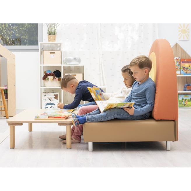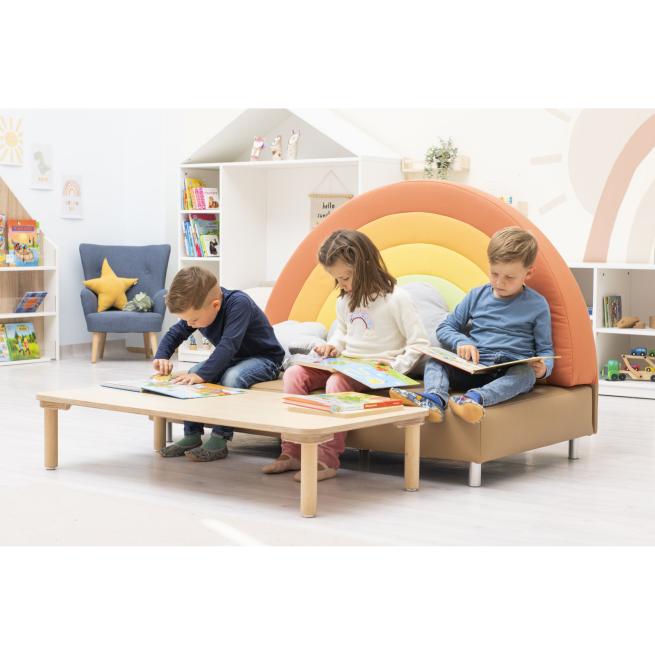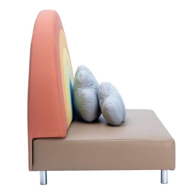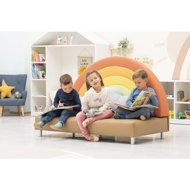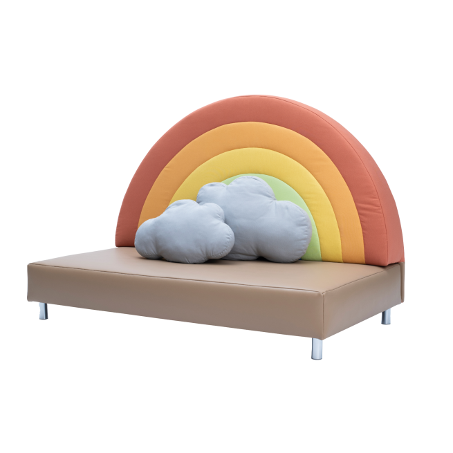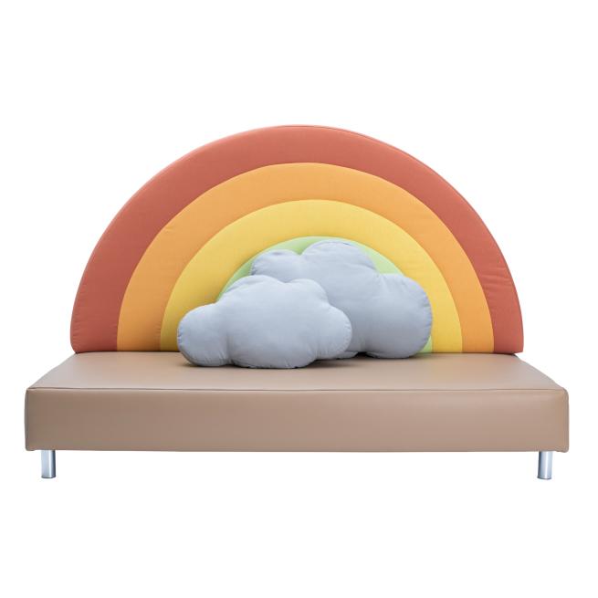 Ein Plätzchen unterm Regenbogen mit dem Kopf in den Wolken. Auf diesem Sofa mit stabilem Holzunterbau entspannen Kinder tagtäglich am liebsten. Die Sitzhöhe von 26 cm ist optimal für die Kleinen. Die beiliegenden Wolkenkissen machen das robuste Sofa zu einer urgemütlichen Sitzgelegenheit, die schnell zur ersten Anlaufstelle fürs Ausruhen wird. Abwischbar mit feuchtem Tuch. Teilmontiert.