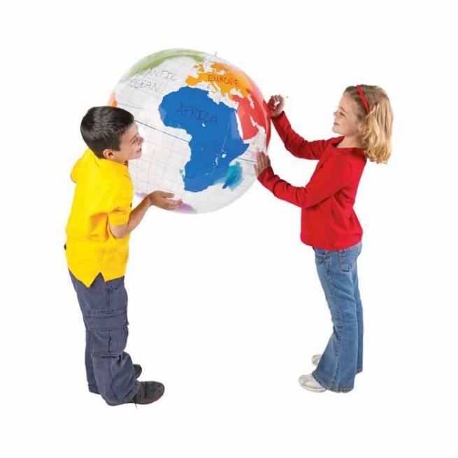 Wenn die Kinder zum Schreiben Whiteboard-Marker benutzen, wischen sie den Globus einfach mit einem trockenen Tuch wieder sauber.