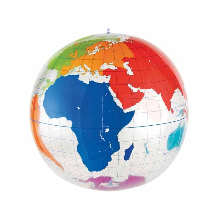 Die Welt in den Händen halten Ihre Schüler mit diesem Globus. Er misst stolze Ø 68 cm. Jeder Kontinent hat eine andere Farbe. Ihre Schüler beschriften den Globus selbst.