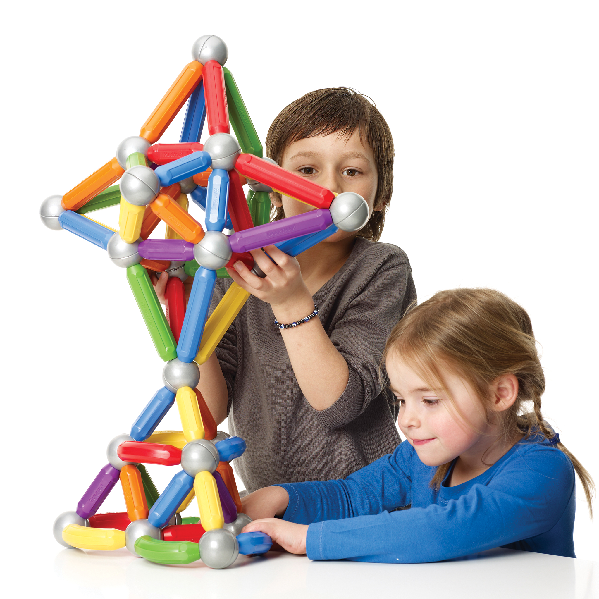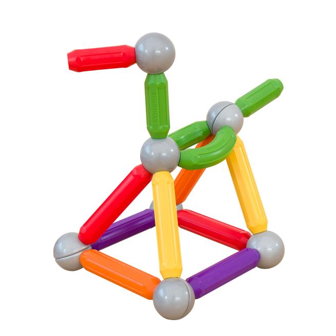 Magnetismus begreifen. Mit diesem Set erfahren Kinder anschaulich das spannende Wechselspiel zwischen Anziehen und Abstoßen. Spielend entstehen magnetische Gebilde oder Figuren. Die einzelnen Stäbe bestehen aus abwaschbarem ABS-Kunststoff, die Kugeln sind aus Metall.