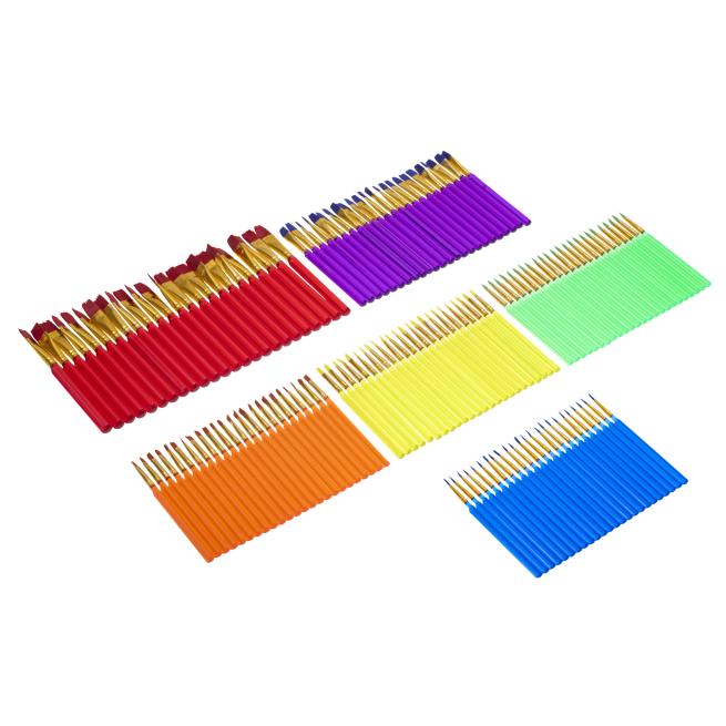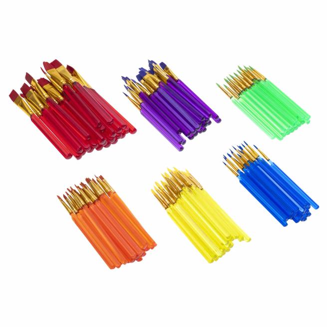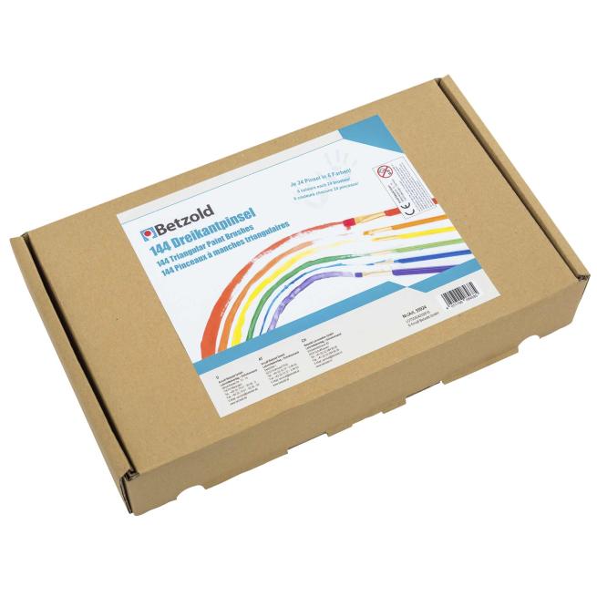 Für einen guten Halt, besonders bei kleinen Kinderhänden, sorgen diese dreieckigen Pinsel. Das Set besteht aus insgesamt 144 Pinseln in 6 verschiedenen Farben und Größen sortiert.