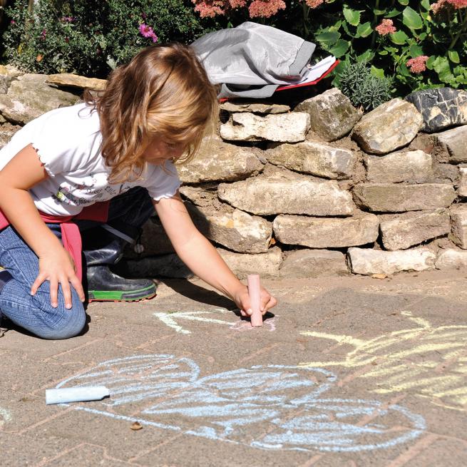 Mit den dicken Kreidesticks in 7 unterschiedlichen Farben zaubern Ihre Kinder aufregende Bilder auf Asphalt oder Pflastersteine. Die praktische Wanne nutzen Sie zur Aufbewahrung oder anderweitig.