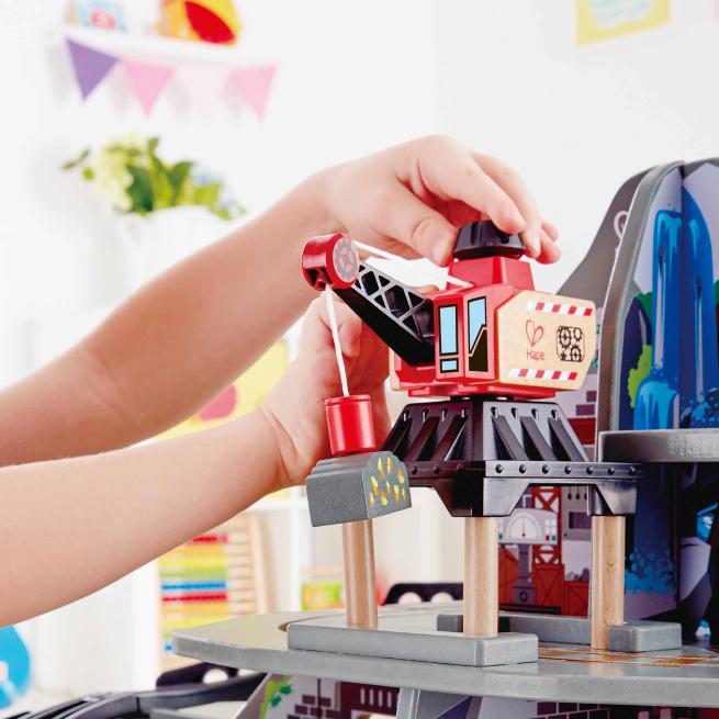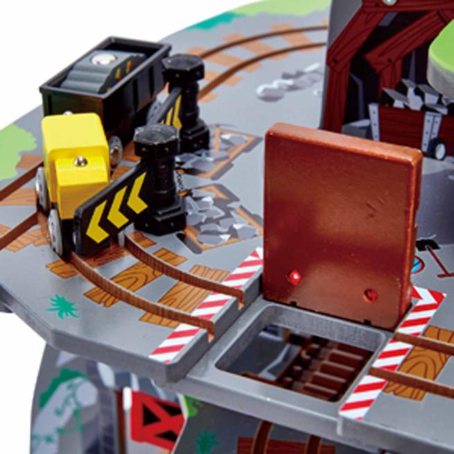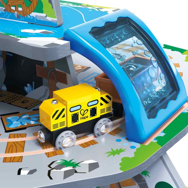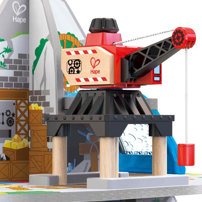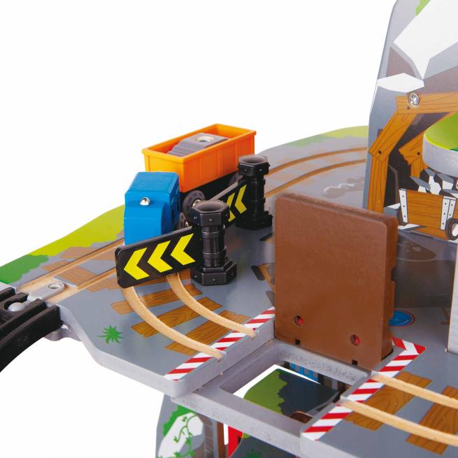 Entdecke das Spielvergnügen mit Tiefe! Steuere deinen Zug vom Gipfel des Berges hinunter in das geschäftige Mineninnere! Dieses mehrstöckige Spielset bietet das ultimative Erlebnis für Eisenbahn-Fans – ausgestattet mit einem Wasserfalltunnel, einer Hängebrücke, einem Kran, einem Förderband und einer Werkstatt! Ab 3 Jahren.