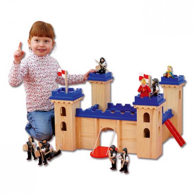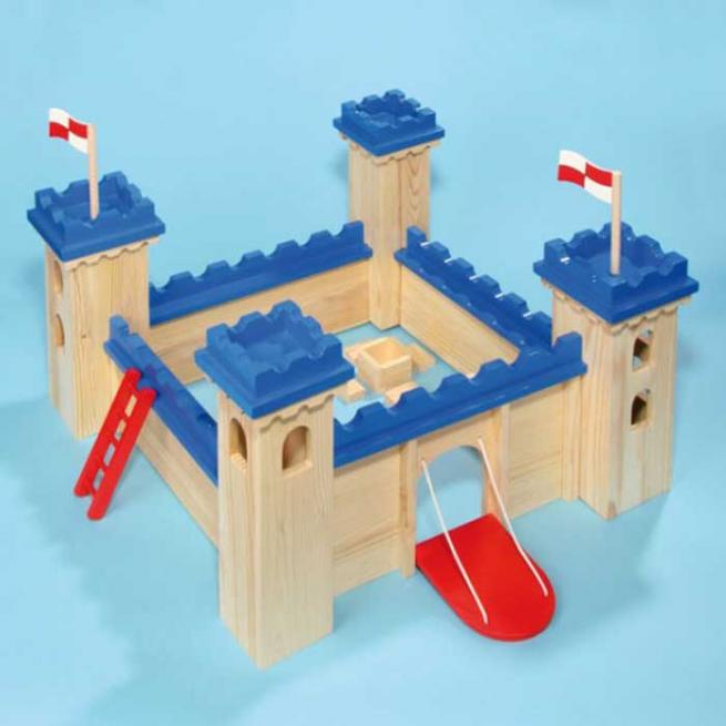 Sie ist sehr stabil und einfach aufzubauen. Inklusive Zugbrücke und zwei Flaggen. Ab 3 Jahren.