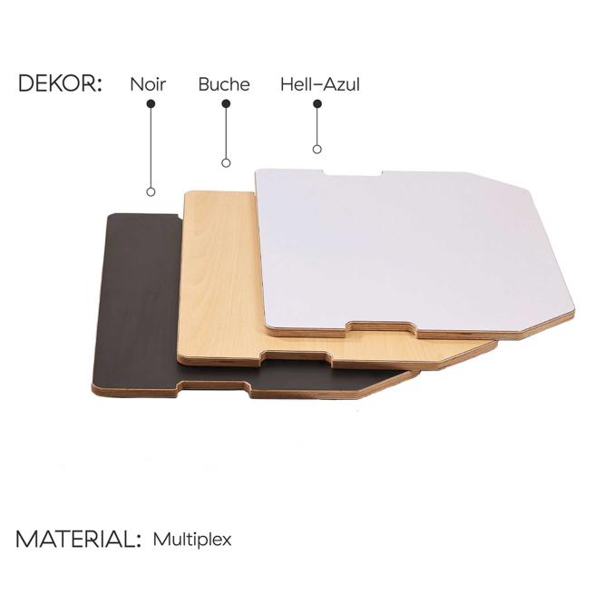 • Tischplatten in Schwarz, Buche und Hellgrau: Multiplex-Platte