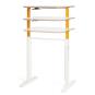Den durchdachten Sitz- und Stehtisch ROCKET-TABLE verstellen Ihre SuS anhand eines praktischen Griffs in Sekundenschnelle. Dazu greifen sie links und rechts in die Aussparungen der Tischplatte und betätigen den rechtsseitig montierten Griff. Die verstellbaren Hubbeine sind orange, das stabile Stahlrohrgestell ist weiß. Sicheren Stand bietet der Doppel-T-Fuß mit Querstrebe. Inklusive Filzgleitern.