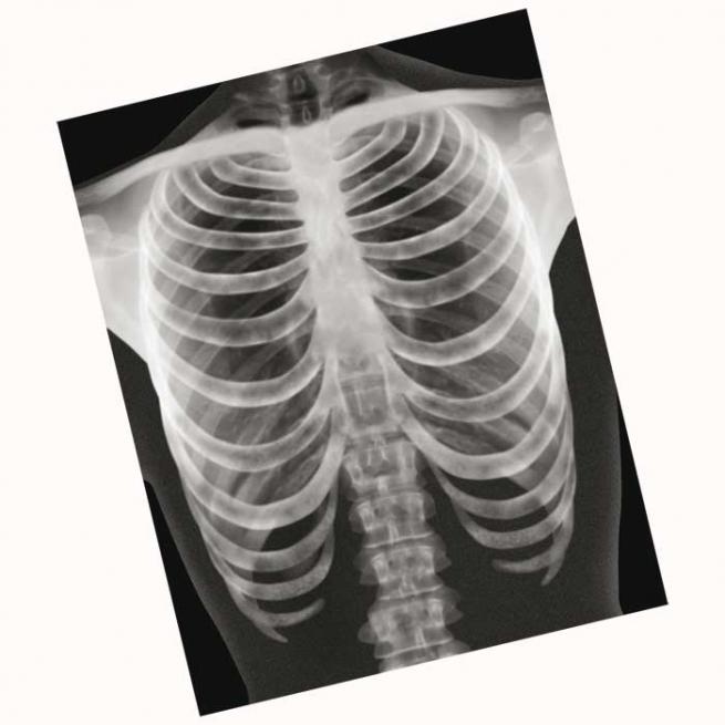 Halten Sie diese lebensgroßen Röntgenaufnahmen eines jungen Erwachsenen gegen das Licht (z. B. Fensterscheibe).