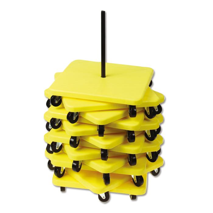 Bis zu 15 Rollbretter können mit dieser praktischen Hilfe gestapelt werden. Hierzu wird die Stange einfach in das Loch des untersten Brettes geschraubt - fertig ist der Rollbrett-Aufbewahrungswagen.