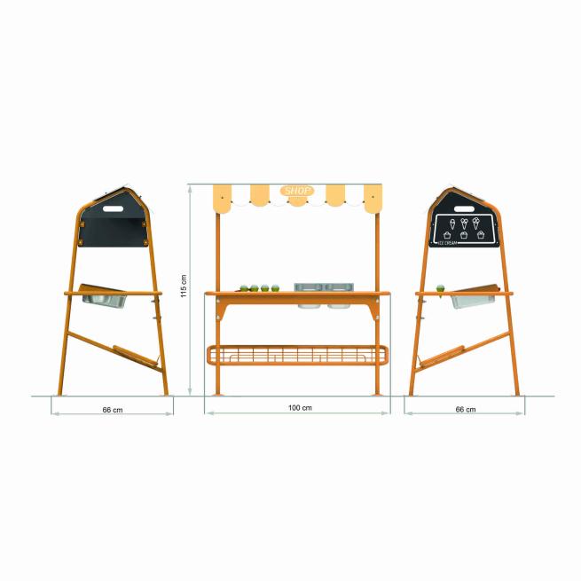 Die Rollenspiel-Station Ice Cream & Shop ist der ideale Marktstand für kleine Verkaufsgenies. Ob Eisdiele oder Marktstand im Sandkasten oder auf der Wiese – die Rollenspiel-Station ermöglicht Kindern fantasievolle Verkaufsszenarien. Hier bestellen, servieren und zahlen sie mit Begeisterung. Ganz nebenbei trainieren sie Sprache, Feinmotorik und das erste Zählen. Ab 3 Jahren