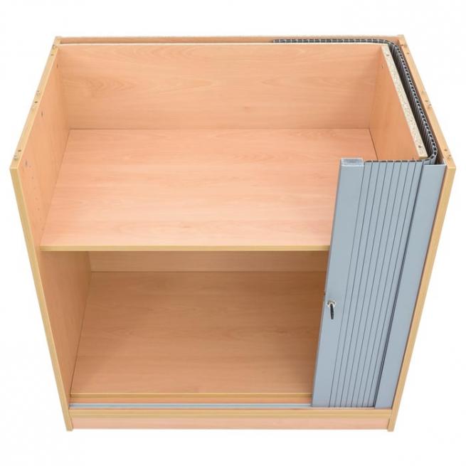 Wenig Raum? Dann sparen Sie sich platzraubende, offen stehende Schranktüren! Mit den Rollladen-Schränken nutzen Sie Ihren Raum sinnvoll. Der alufarbige Rollladen aus Kunststoff sorgt für einen modernen Look. Beim Öffnen verschwindet er einfach in der doppelwandigen Rückwand.