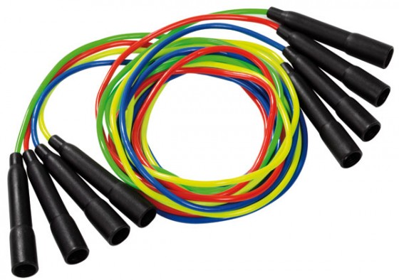 Die schnelle, sportliche Variante des Seilspringens. Mit diesen leuchtenden Spezialseilen lassen sich auch die schwierigsten Figuren und Kombinationen einfach umsetzen. Seile in leuchtenden Farben mit festen Griffen, in denen das Seil frei beweglich bleibt. Die kürzeren Längen von 2,43 m und 2,73 m sind ideal für Kinder.