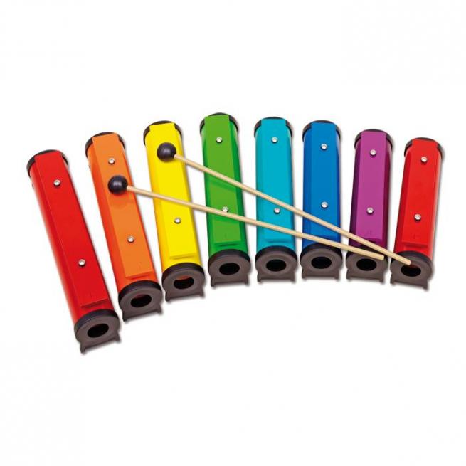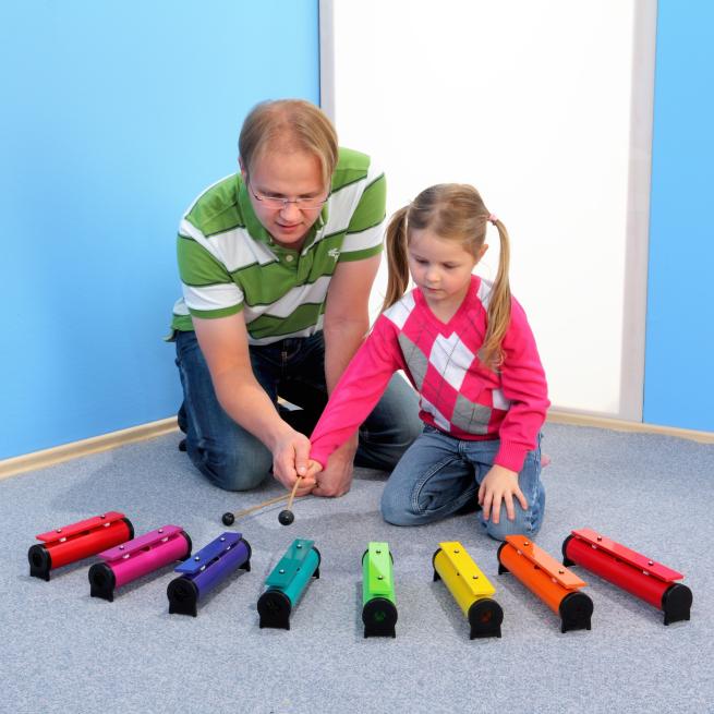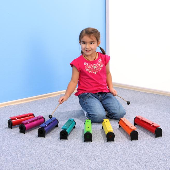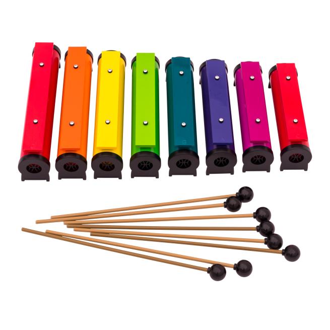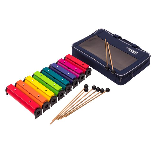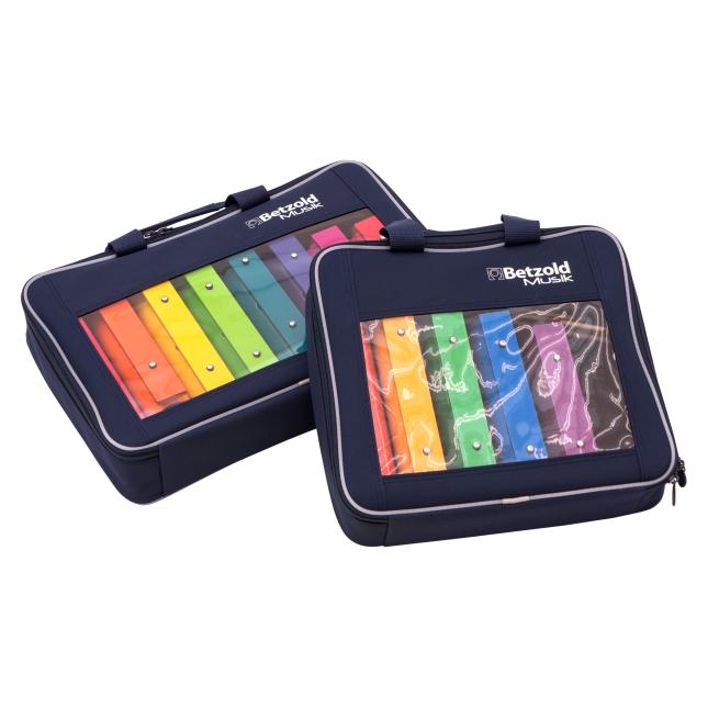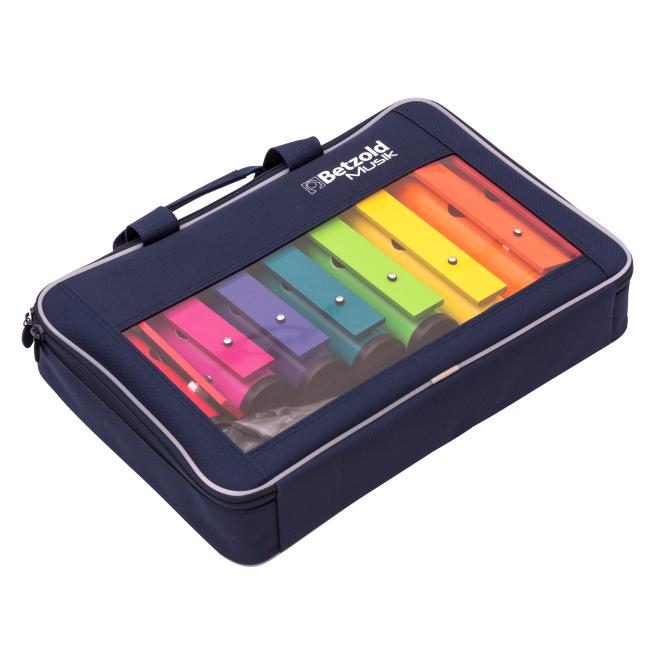 Die 8 farbigen Round-Sound Tubes ergeben eine komplette Tonleiter von c¹ - c². Den Round-Sound Tubes liegen 8 Gummikopfschlägel in einer stabilen Tragetasche aus 100 % Polyester bei.