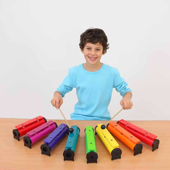 Die Farbcodierung entspricht der der BOOMWHACKERS® und Joia Tubes®. So lernen Kinder auf spielerische Weise das Notenlesen. Alle Tubes haben einen Durchmesser von 5 cm bei einer Höhe von 6,5 cm.