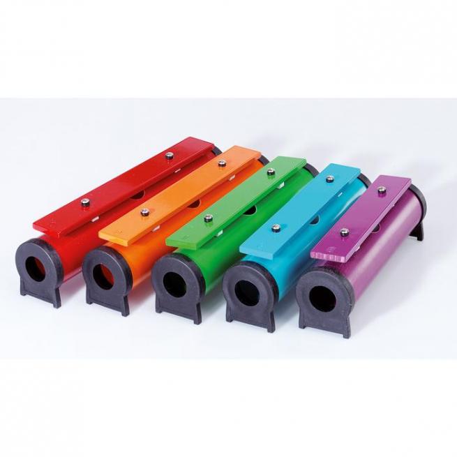 Die farbigen Round Sound Tubes gibt es in 2 Ausführungen. Zum einen die 8 Tubes, die eine komplette diatonische Tonleiter mit dem Tonumfang von c1 – c2 ergeben und zum anderen das 5-teilige Ergänzungs-Set, mit dem Sie das Klangspektrum um die 5 Halbtöne cis, dis, fis, gis und b erweitern. Beiden Sets liegen je 8 und je 5 Gummikopfschlägel bei.