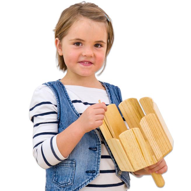 Die Klangplatten bestehen aus ausgesuchtem Hartholz. Die Schüler halten das Instrument in der Hand. Wenn sie mit dem Klöppel rühren, mischt sich ein kräftiger Sound aus hohen und tiefen Tönen. Es ist aber auch möglich, die Klangplatten von außen einzeln anzuschlagen, ähnlich wie bei einem Xylophon.
