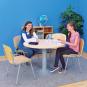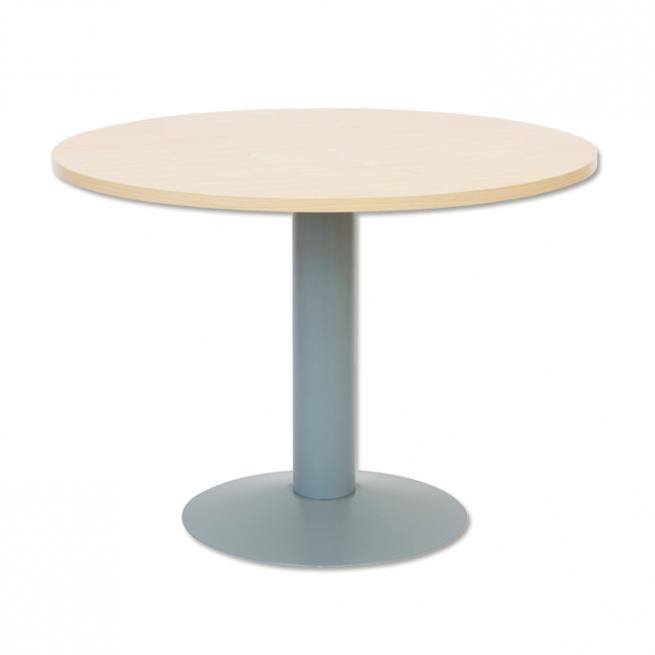 Ob im Lehrerzimmer, im Besprechungsraum, für den Schülertreff oder auch im Schul-Bistro – an diesem einladenden nimmt man gern Platz und bespricht wichtige Themen. Der runde Tisch ist mit einem zentralen Standfuß aus grauem, pulverbeschichtetem Stahlrohr ausgestattet. Tischplatte besteht aus hellem Buchenholz.
