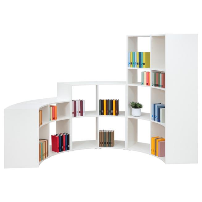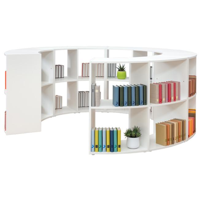 Lesen ist Lernen. Kreieren Sie für Ihre Schüler eine motivierende Lernumgebung aus den Elementen der Serie Lesetreff. Setzen Sie die Komponenten der Serie nach Ihren Wünschen zusammen und schaffen Sie so eine individuelle Bibliothek im ansprechendem Design. Wellen- und kreisförmige sowie hohe, mittlere und niedrige Regale bieten viel Stauraum. Lesekoje und -nest sind gemütliche Rückzugsorte zum Wohlfühlen. Optimal zum Eintauchen in neue Lernwelten. Die stabilen, langlebigen Regale bestehen aus kunststoffbeschichteten Spanplatten.