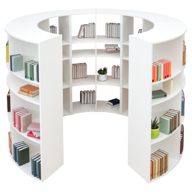 Lesen ist Lernen. Kreieren Sie für Ihre Schüler eine motivierende Lernumgebung aus den Elementen der Serie Lesetreff. Setzen Sie die Komponenten der Serie nach Ihren Wünschen zusammen und schaffen Sie so eine individuelle Bibliothek im ansprechendem Design. Wellen- und kreisförmige sowie hohe, mittlere und niedrige Regale bieten viel Stauraum. Lesekoje und -nest sind gemütliche Rückzugsorte zum Wohlfühlen. Optimal zum Eintauchen in neue Lernwelten. Die stabilen, langlebigen Regale bestehen aus kunststoffbeschichteten Spanplatten.