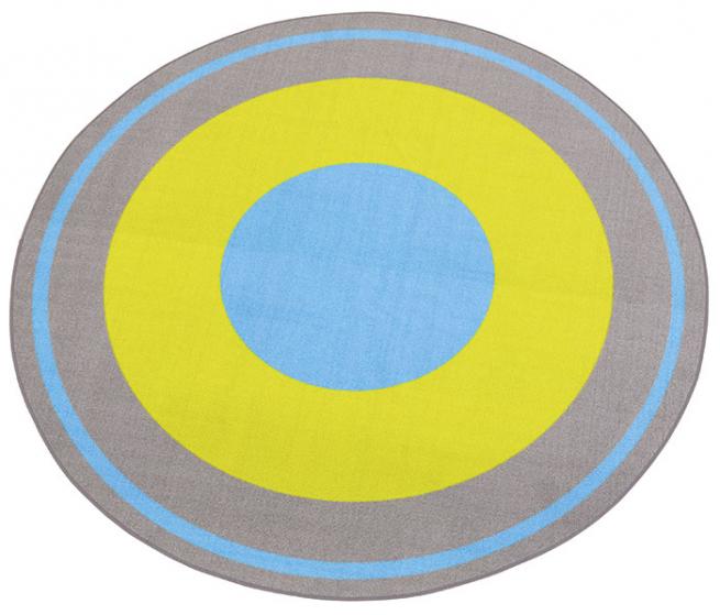 Gemeinsame Erlebnisse in der Runde. Zusammen lesen, spielen, bauen, kleine Gruppenprojekte besprechen oder auch den Sitzkreis abhalten – dazu lädt der kreisrunde Teppich mit seinen farbenfrohen Ringen ein. Die Ringe können die Sitzordnung im Kreis vorgeben und für guten Blickkontakt sorgen. Der Teppich ist speichelecht, schweißfest und rutschhemmend. Ø 2 m