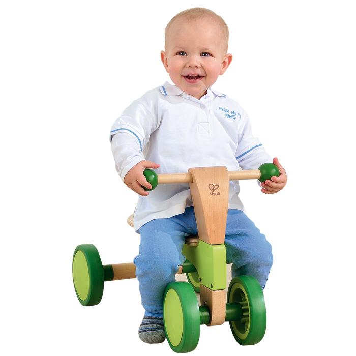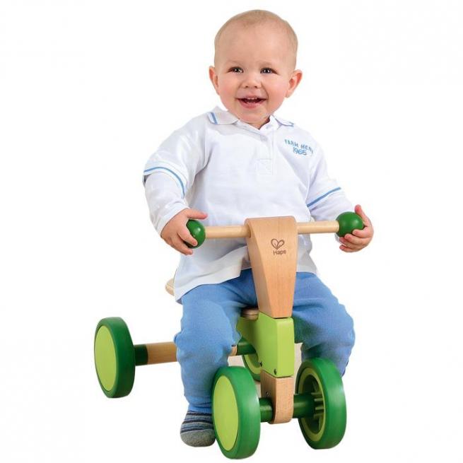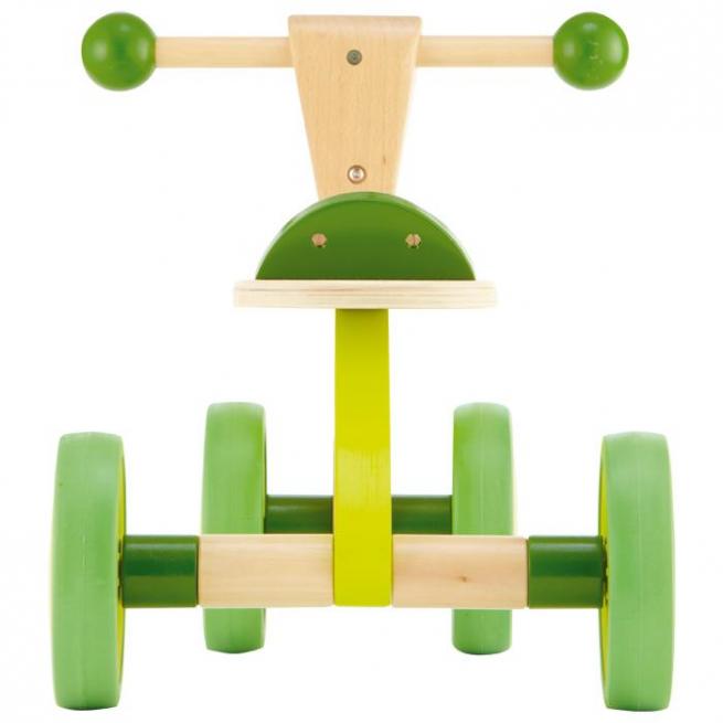 Schon den Kleinsten macht es Spaß, auf Rädern unterwegs zu sein. Auf dem Rutschrad stoßen sich die Kinder mit den Beinen ab. Das kräftigt die Muskeln und fördert die Balance. Vier Räder aus weichem Kunststoff erleichtern das Rollen. Das Rutschrad besteht aus solidem Holz und lässt sich mit dem griffigen Lenker leicht steuern.