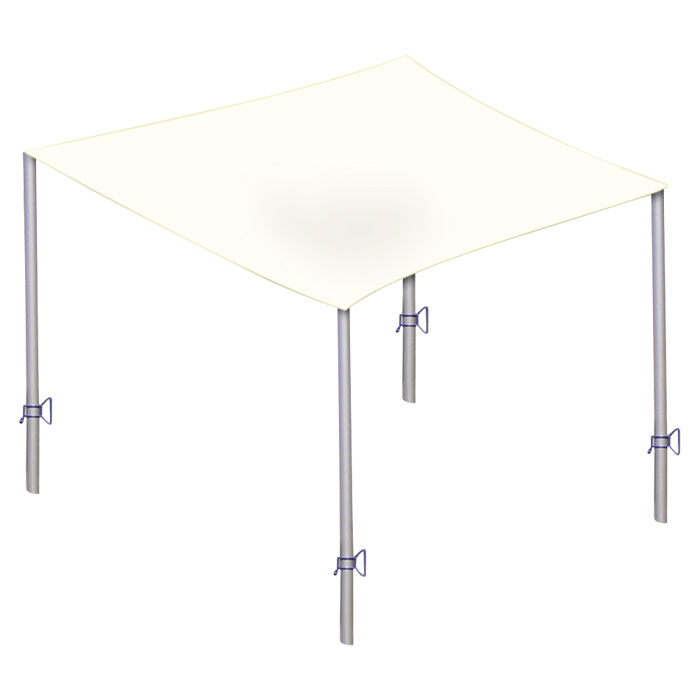 2. Am Stahlmast befindet sich der Mastgriff. Das Sonnensegel befestigen Sie daran mit den Gummiseilen oder auch Spannschrauben (bitte separat bestellen).