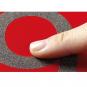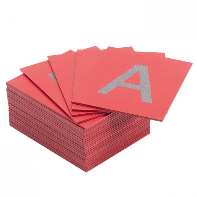 Fühl-Buchstaben auf rot lackierten Platten.