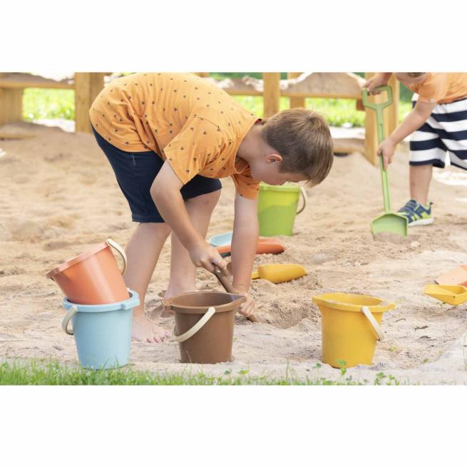 Mit dem Sandspieleimer aus treeNside-Material in den Farben Curry, Türkis, Coral, Braun, Bunt und Grün erleben Kinder ab 4 Jahren spannende Abenteuer im Sandkasten und fördern gleichzeitig ihre Kreativität und motorischen Fähigkeiten. Diese hochwertigen Sandspieleimer sind nicht nur robust und langlebig, sondern auch umweltfreundlich produziert – perfekt für Kindergarten, Vorschule und den heimischen Sandkasten.