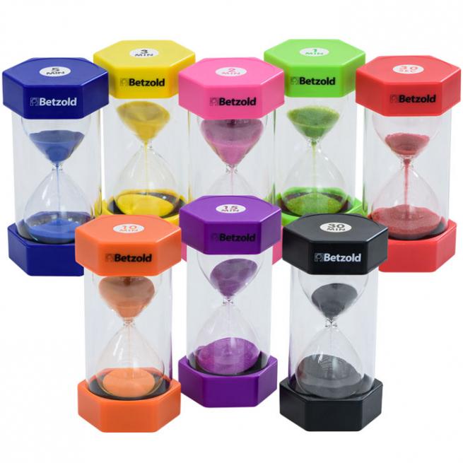 Wie kurz sind 10 Minuten, wenn ich abends noch spielen möchte und wie lang dauern eigentlich 3 Minuten, wenn ich mir die Zähne putze? Diese stabilen Sanduhren mit farbigem Sand helfen Kindern dabei, die Zeit kennenzulernen und sie selbst einzuteilen. Der Sanduhrkörper wird von einer fest verschlossenen Kunststoffröhre geschützt.