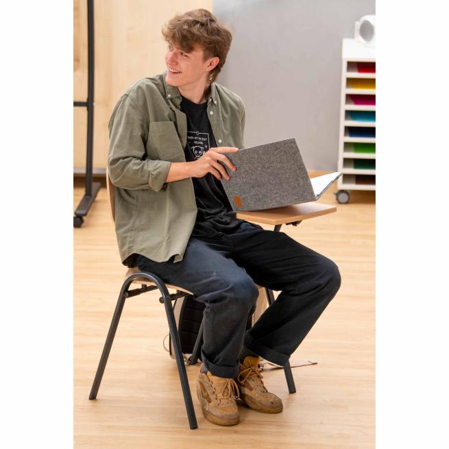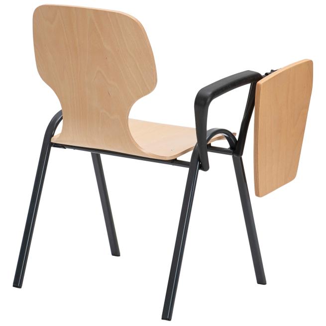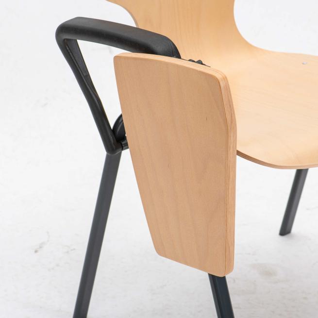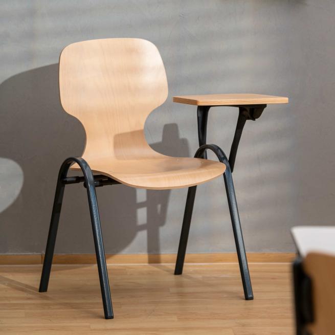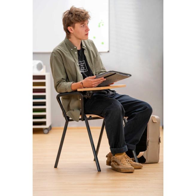 Schalenstuhl College mit Tablar ist die ideale Lösung für Räume mit begrenzten Platzverhältnissen oder für Mehrzweckbereiche. Der praktische Allrounder ist ergonomischer Stuhl und kompakter Arbeitsplatz in einem. Die besondere Form der Sitzschale sowie die abgerundeten Ecken und Kanten gewährleisten einen gesunden und bequemen Sitz. Dabei nutzen die SuS den abklappbaren Mini-Tisch als Unterlage zum Lesen und Mitschreiben. Das spart reichlich Fläche, denn zusätzliche Tische benötigen Sie nicht. Nach dem Einsatz verstauen Sie die stapelbaren Stühle flott und platzsparend – perfekt für Fachräume und Orte mit wechselnden Nutzungszwecken. Die Auslieferung des Stuhls erfolgt fertig montiert.