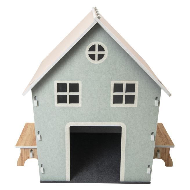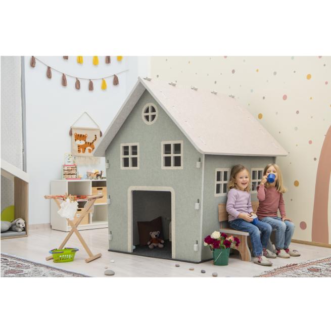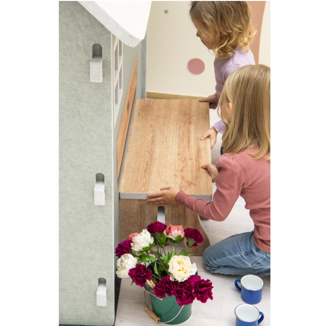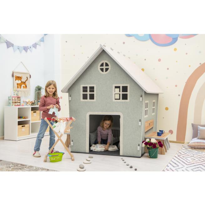 Das Schallschutz-Landhaus Gitta ist mitten im trubeligen Gewusel eine kleine Oase der Ruhe. Mit seinen warmen Farben, liebevollen Details und den einladenden Sitzbänken wirkt es wie ein Ort der Geborgenheit, an dem sich Kinder sofort wohlfühlen. Schnell wird es zum liebsten Rückzugsort der Gruppe. Ob als geheime Kommandozentrale für spannende Abenteuer, als einladendes Café für Teepartys oder als kuschelige Leseecke – das liebevoll gestaltete Landhaus bietet unzählige Spielmöglichkeiten.