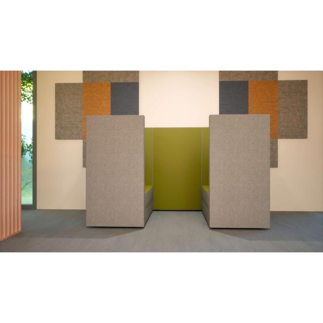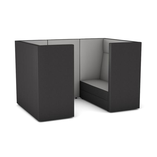 Hier sind Sie komfortabel abgeschirmt gegen Umgebungslärm. Einfach hineinsetzen und dem Umgebungslärm entfliehen. Das leichte Rücken-Gefälle und der Federkern im Sitz geben angenehmen, ergonomischen Sitzkomfort. Die hohen Rückenlehnen schirmen akustisch ab. So bleiben Gespräche leise und diskret, Lernzeiten störungsfrei und die Umgebung ruhiger. Der Schallschutz wirkt in beide Richtungen.