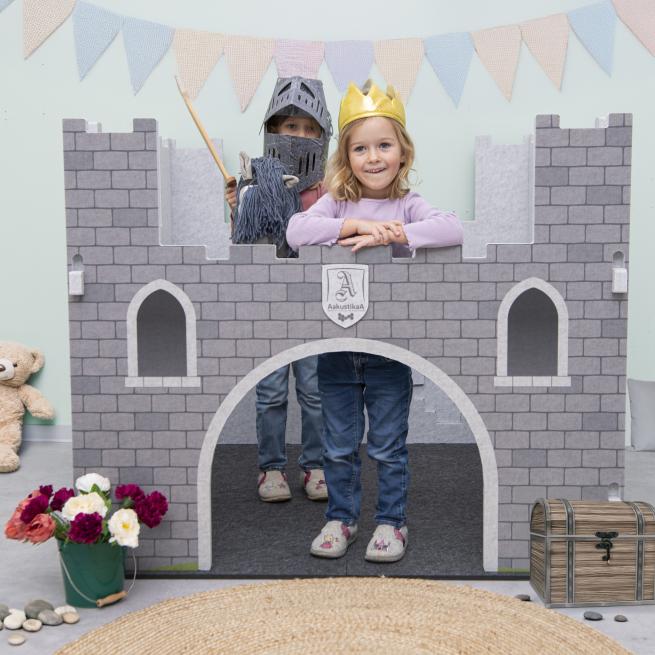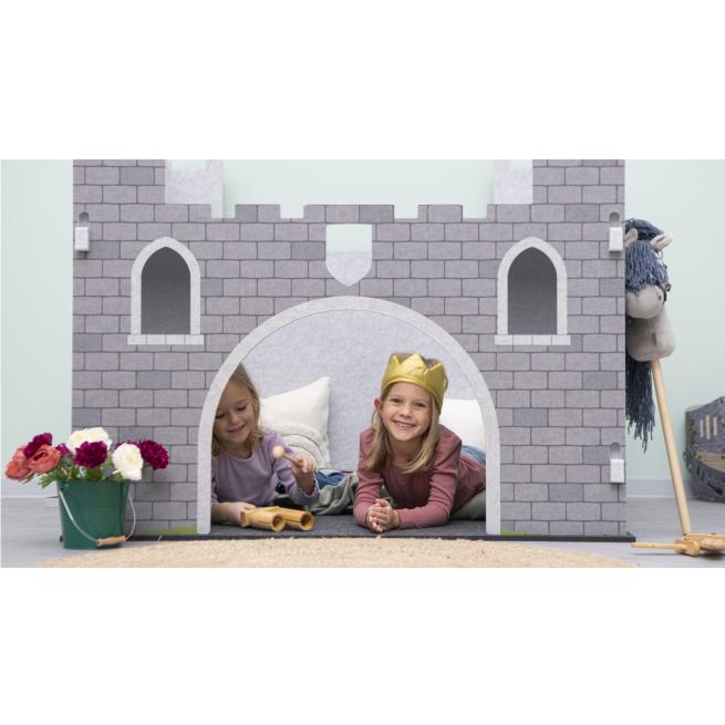 Mit der Spielburg Feste Flori aus Akustikpaneelen bieten Sie Ihren Kindern die Möglichkeit auf ein mittelalterliches Abenteuer in einer ruhigen Spielatmosphäre. Ob als prächtige Festung für königliche Feiern oder als geheimnisvolles Versteck für wertvolle Schätze – die fantastischen Welten Ihrer Kinder werden hier lebendig. Dank des praktischen Stecksystems bauen Sie die Spielburg schnell auf. Eine geheimnisvolle Schatztruhe und ein mutiger Ritter bieten noch mehr Spielspaß.