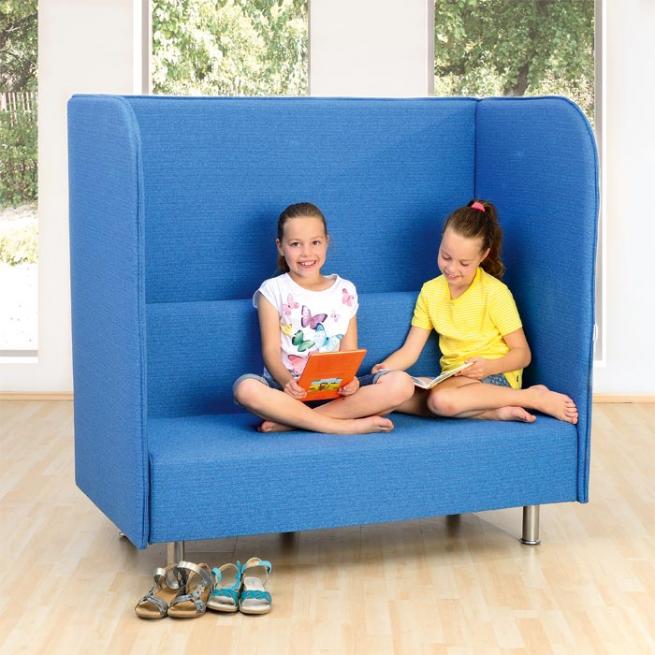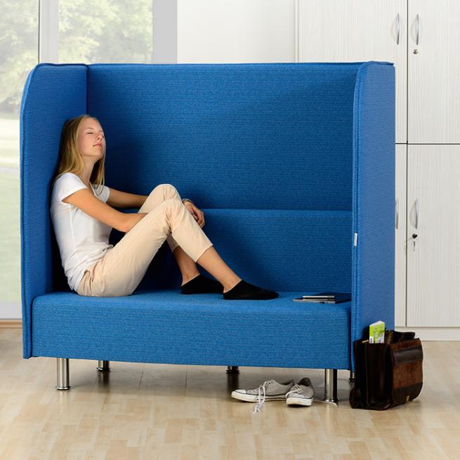 Ein hoher Geräuschpegel kann schnell Stress auslösen. Abhilfe schafft dieses Schallschutzsofa als Ruhenische mit extrahoher Lehne sowie Schall- und Lärmschutzfunktion. Damit schaffen Sie für Ihre Schüler und Schülerinnen ganz leicht Rückzugsmöglichkeiten zum Entspannen, Lesen oder Spielen. Die 5 verchromten Stützfüße aus Metall drehen Sie nur noch ein.