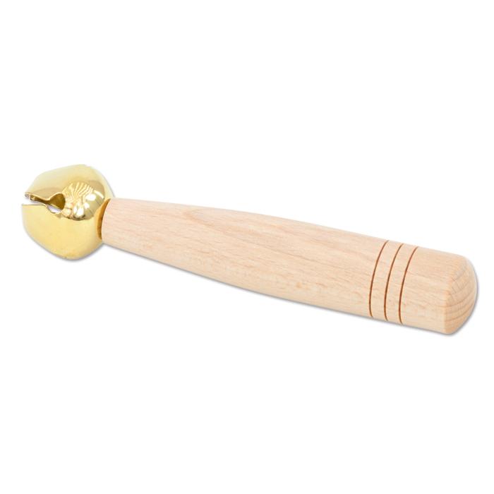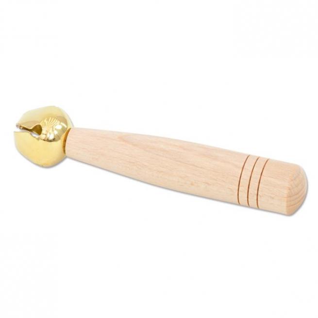 Kleine Kinder können den Schellenstab aus Buche besonders gut halten. Er gibt einen Ton in mittlerer Tonlage ab.