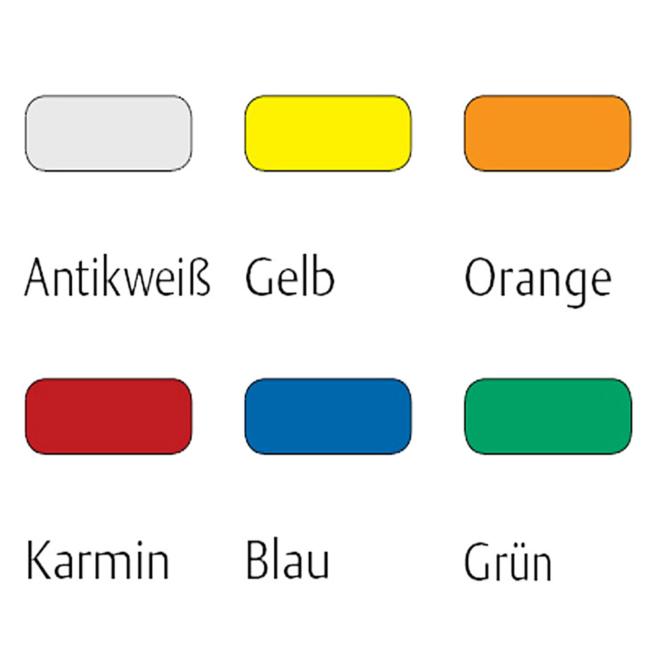 6 Farben à 250 ml im Set: Weiß, Gelb, Orange, Karminrot, Blau und Grün