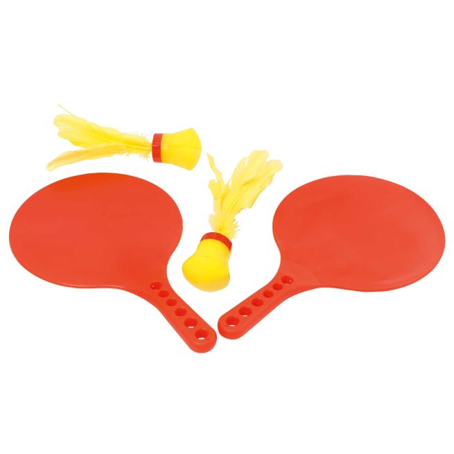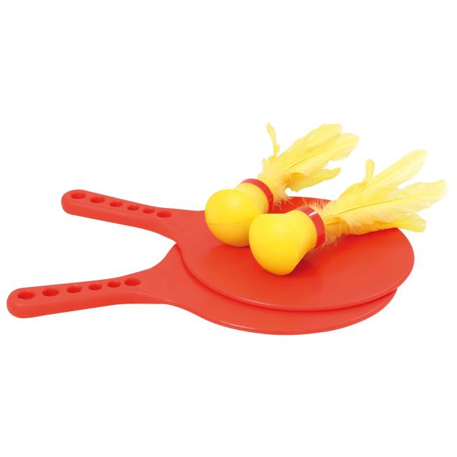 Das spaßige Rückschlagspiel mit etwas anderen Flugeigenschaften, denn hier hat der Ball Federn. Set mit 2 stabilen Schlägern und 2 Bällen.