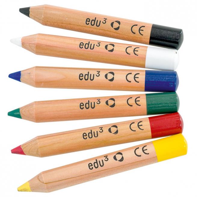 6 Stifte in Gelb, Rot, Grün, Blau, Weiß und Schwarz