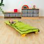 Ihre Kleinen schlafen kuschlig warm zu jeder Jahreszeit. Mit Sommer- und Winterseite passt sich der Schlafsack optimal an. Dank Klettverbindern befestigen Sie den Schmuse-Schlafsack leicht an der Liege. Genügend Klettbänder geben perfekten Halt. Das Aufräumen geht ruckzuck, denn beim Stapeln der Liegen bleiben die Schlafsäcke einfach auf den Liegen. So ist das Ruhebett jederzeit für den nächsten Einsatz bereit.