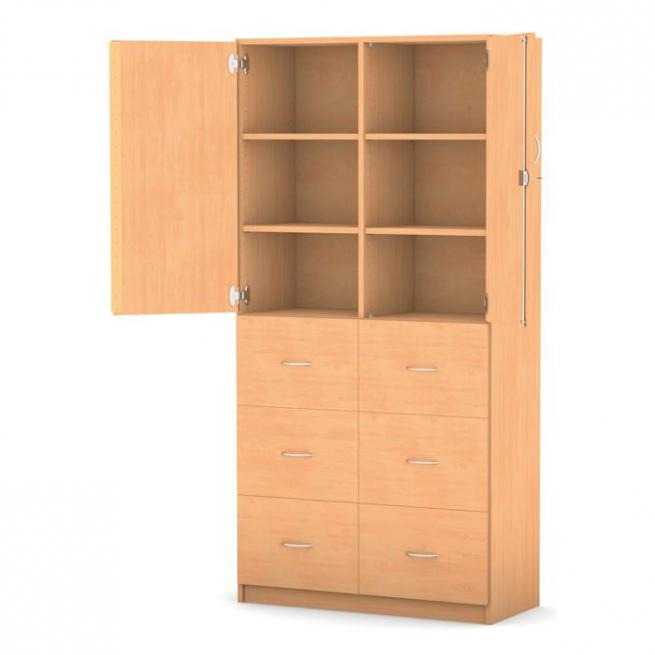 Schrank mit Mittelwand, 6 hohe Holzschubladen mit Griffen, mit Hängeregister, mit Halbtüren, mit 4 verstellbaren Böden