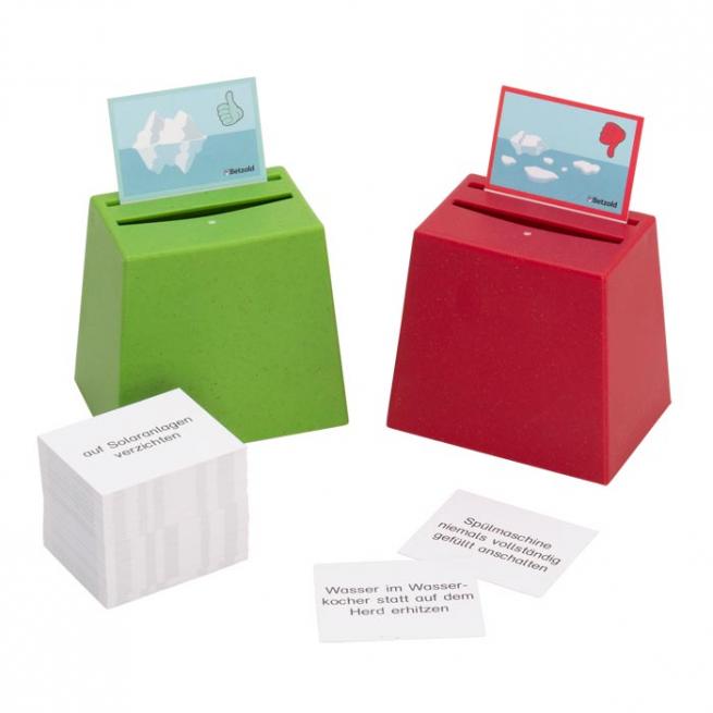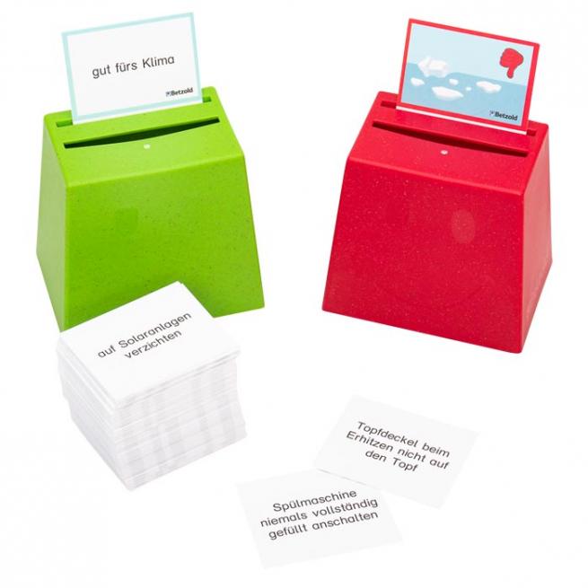 Ihr Umweltbewusstsein schärfen Kinder mithilfe des spannenden Sortierspiels. Die Aussagen auf den Karten sortieren die Kinder danach, ob sie gut oder schlecht für unser Klima sind. Dazu nutzen sie am besten einen grünen Becherquizzer (nicht enthalten) für die gute und einen roten für die schlechte Aussage. Nun entscheiden die Kinder z. B., ob es klimagünstig ist, auf Solaranlagen zu verzichten oder nicht. Bei der Selbstkontrolle hilft das Vergleichen der jeweiligen Lösungsmuster am Kartenrand.