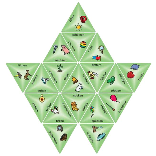 Kinder erweitern spielend ihren Wortschatz und festigen den Ausdruck. Bei jeder Karte ordnen die Kinder 3 Begriffe zu. Sie lösen so 54 Aufgaben pro Spiel. Richtig angelegt entsteht ein symmetrisches Muster zu eindeutigen Selbstkontrolle. Karten aus stabilem Karton. Mit ausführlicher Spielanleitung.