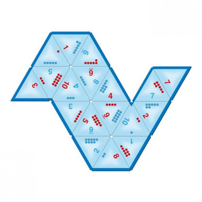 Jede der dreieckigen Karten aus stabilem Karton enthält eine Aufgabe, die Lösung steht auf einer anderen Karte. Die Spielkarten werden wie beim beliebten Domino passend aneinandergelegt – bei SchubiTRIX grenzen immer Aufgabe und Lösung aneinander. Wenn die Karte richtig liegt, stimmen gleich 3 Ergebnisse. Zum Schluss entsteht ein geschlossenes Muster. Das Spiel schult Konzentration und Kopfrechen. Ideal auch für den Förderunterricht. Jede SchubiTRIX-Schachtel enthält 2 Spiele mit verschiedenen Schwierigkeitsgraden.