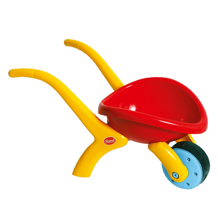 Diese robuste Schubkarre bringt so leicht nichts ins Wanken: hochwertiger Kunststoff, Gummibereifung und ein sehr breites Vorderrad spornen bereits Kinder ab 1 Jahr zum Befördern von Sand oder Gegenständen an.