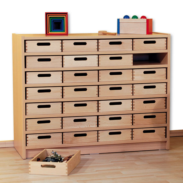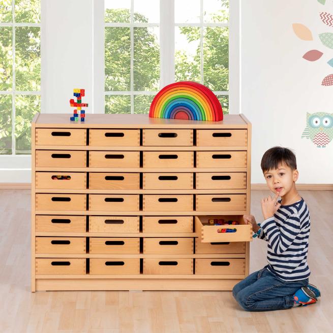 NACHHALTIG: Das Schubkastenregal besteht aus stabilem Massiv-Holz und ist Made in Germany. Das spart aufgrund der kurzen Transportwege entsprechend CO2 ein.